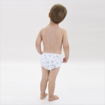 We have specially designed these padded potty training pants to fit loosely so that they can be pulled on and off by the toddler, without adult help. Not only does this increase the chance of getting to the potty on time, but it also makes the whole process much more independent, which is the goal of this potty training system. They have an absorbent center panel that contains the accidents, but will make your toddler uncomfortable and therefore increase her awareness of her excretory function, especially when compared to diapers and pull-ups. The potty pants feature breathable side panels, wide rib leg bands for a comfortable fit and a center panel with fiber sponge for super absorbency. These padded potty training pants are very comparable to the Gerber training pants. I highly recommend these potty training pants. They are our best sellers, however these potty pants are not waterproof and if you are worried about messes and leakages coming through the potty pants, we carry three other types of potty training pants that have an waterproof outer layer. 1. Simple, but effective waterproof covers that would go over the padded potty pants and provide the added protection. 2. The 2 in 1 Waterproof Potty Training Pants - by Mom Innovations are ideal if you are worried about accidents making a big mess and leaking everywhere. 3. The Night Time Potty Training Pants with Waterproof Fabric are great for naps or night time potty training. Care Instructions for Padded Potty Training Pants : Machine wash in warm water with like colors. Use only non-chlorinated bleach when need. Tumble dry on low to medium. Do not iron. Do not dry clean. Center & Side Panels: 100% Cotton Inner padding : 50% Polyester/50%Viscose NOTE: Washing these once before using them increases the absorbency of the padding!!